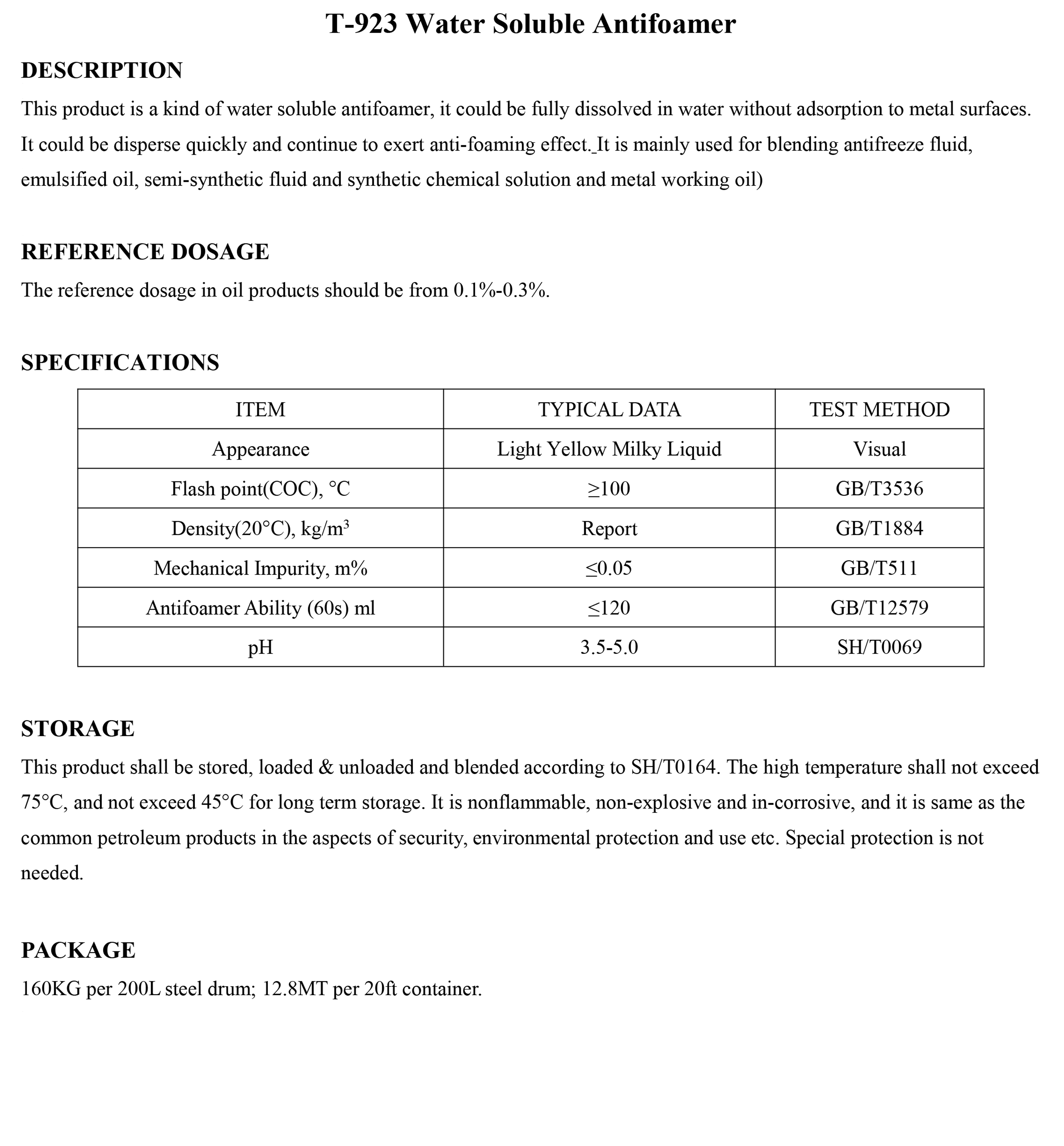 T-923 Water Soluble Antifoamer-Antifoamer-錦州新興石油添加劑有限責(zé)任公司