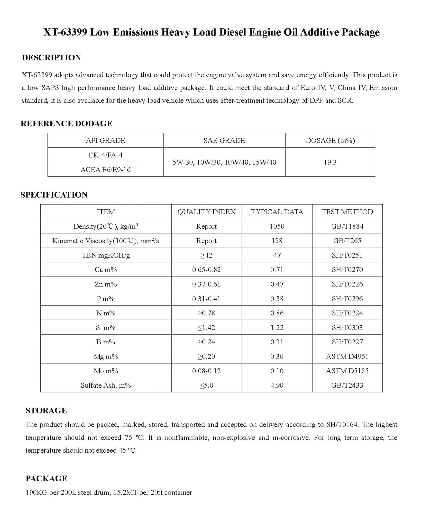 XT-63399 Low Emissions Heavy Load Diesel Engine Oil Additive Package-Engine Oil Additive Package-錦州新興石油添加劑有限責任公司