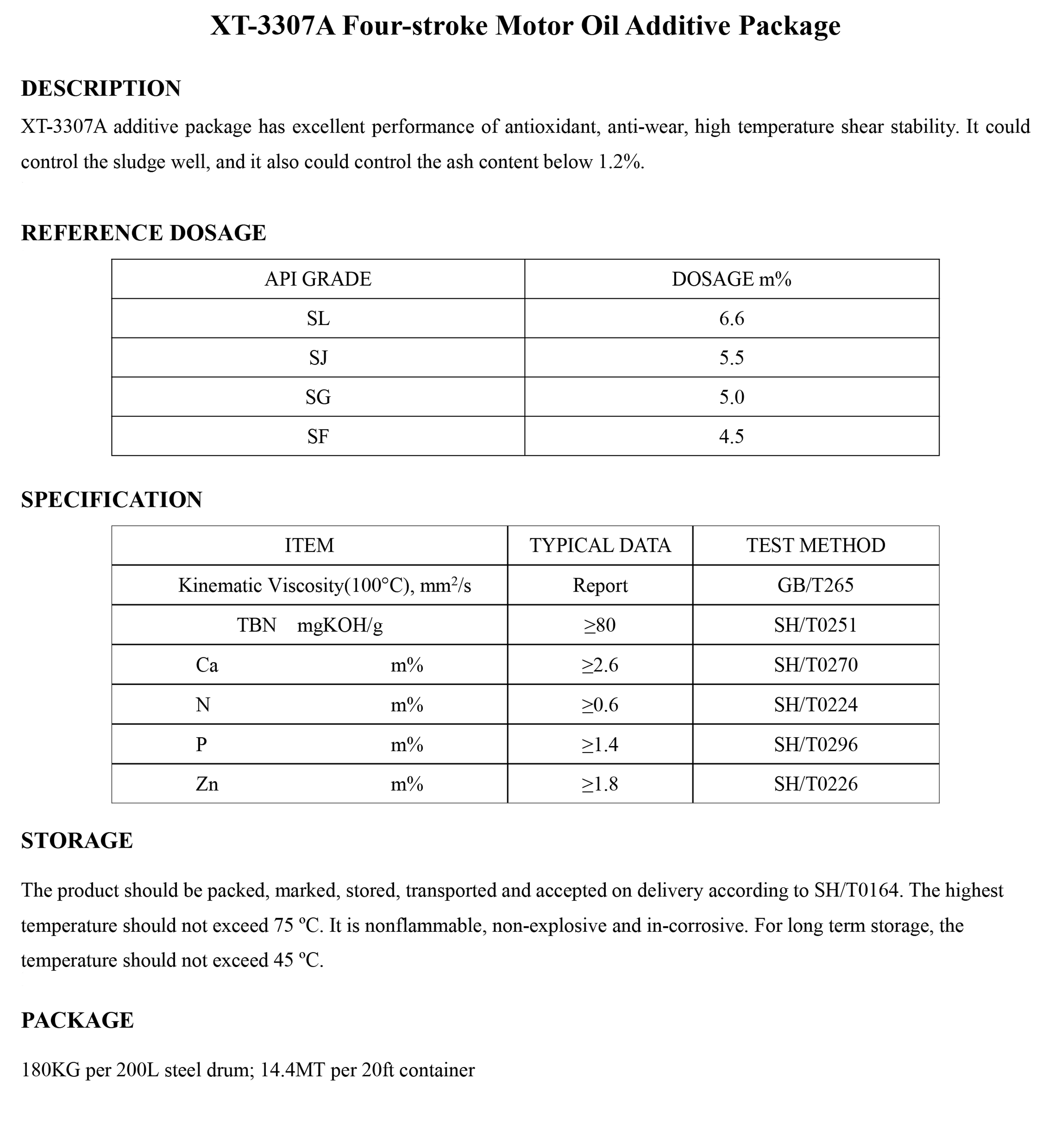 XT-3307A Four-stroke Motor Oil Additive Package-Engine Oil Additive Package-錦州新興石油添加劑有限責(zé)任公司