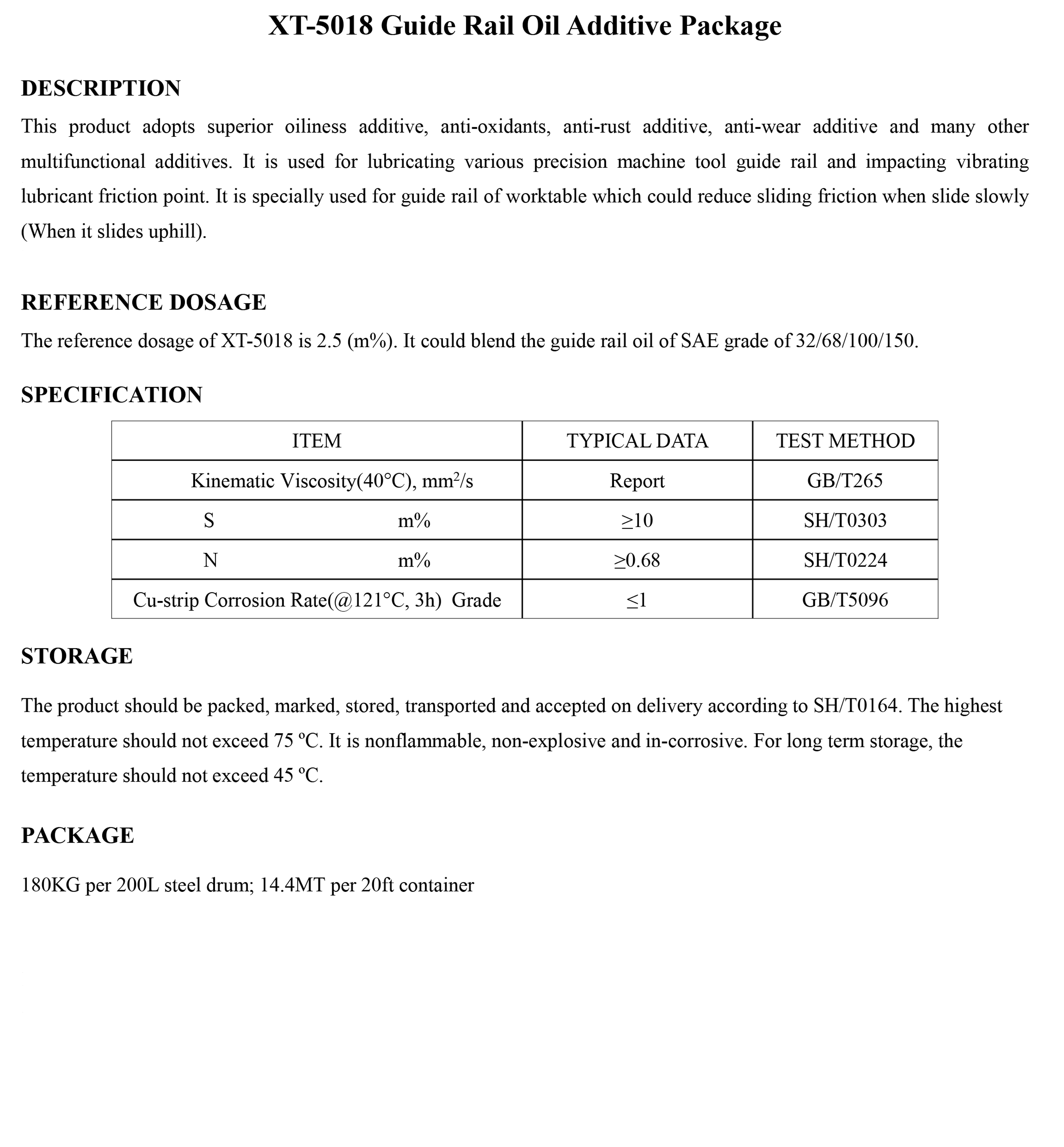 XT-5018 Guide Rail Oil Additive Package-Hydraulic Oil Additive Package-錦州新興石油添加劑有限責(zé)任公司