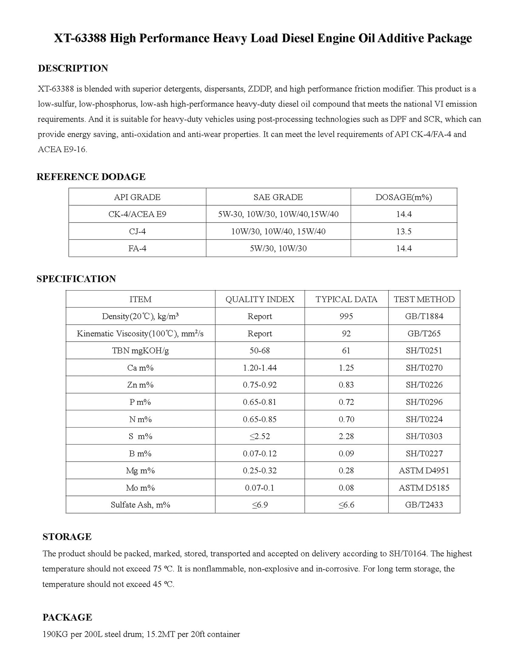 XT-63388 High Performance Heavy Load Diesel Engine Oil Additive Package-Engine Oil Additive Package-錦州新興石油添加劑有限責(zé)任公司